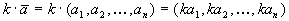 Margföldun með tölu: Vektor er hægt að margfalda með tölu k. Hvert hnit hans er þá margfaldað með k. Útkoman er vektor: Samlagning: Ef tveir vektorar hafa sömu vídd er hægt að leggja þá saman og summa þeirra er Frádráttur: Frádráttur er skilgreindur út frá margföldun og samlagningu: Margföldun með vektor: Tveir jafnvíðir vektorar eru margfaldaðir saman eða innfaldaðir með því að reikna summuna af margfeldi hnita með sama númeri. Útkoman er tala: Lengd: Lengd vektors er táknuð með tveimur lóðréttum strikum og skilgreind sem kvaðratrótin af innfeldi vektorins við sjálfan sig: ![]() |