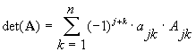 Įkveša n×n fylkis: Lįtum A vera n×n fylki meš stökum ajk og lįtum Ajk tįkna (n-1)×(n-1) fylki sem fengiš er meš žvķ aš fjarlęgja lķnu j og dįlk k śr fylkinu A. Įkveša A veršur žį